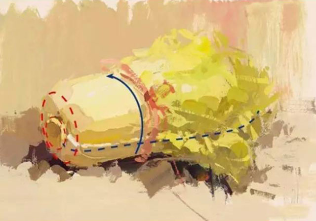 大白菜是我们生活中常见的一种蔬菜,其外形类似于圆柱体,在刻画时可适当借鉴圆柱体的塑造要点进行表现。白菜的形体特点是由紧凑的菜帮和松散的菜叶一片一片紧密地叠加构成的。