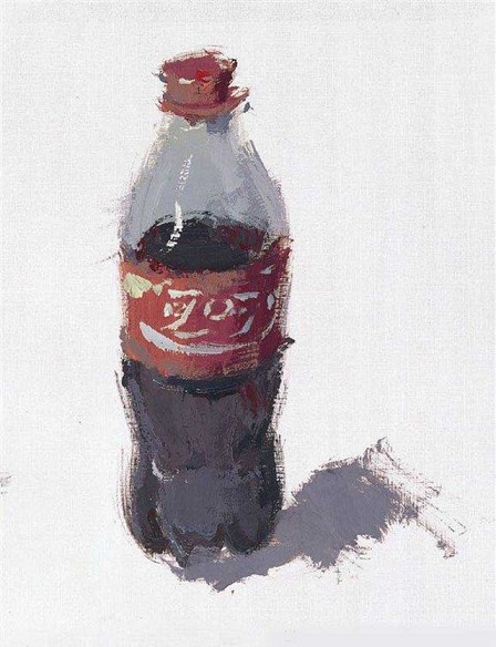 可乐瓶的质感、体积的体现与其周围的环境色不无关系,只要在明暗、冷暖等方面多注意协调处理会画出的画面。